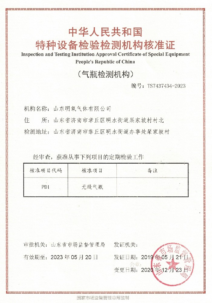 ??? 山東明氧氣體有限公司的前身為始建于1993年的章丘市明水氧氣廠,2020年12月企業(yè)由民營(yíng)獨(dú)資轉(zhuǎn)型升級(jí)為山東明氧氣體有限公司,企業(yè)進(jìn)入新的發(fā)展階段。公司位于山東省濟(jì)南市章丘區(qū)明水街道杲家坡村村北,占地面積4000平方米,注冊(cè)資金500萬(wàn)元,固定資產(chǎn)投資3000萬(wàn)元,主要經(jīng)營(yíng)項(xiàng)目為醫(yī)用氧氣、工業(yè)氧氣、氮?dú)?、高純氮?dú)狻鍤?、高純氬氣、高純氦氣、二氧化碳、混合氣體等各種工業(yè)氣體、高純氣體、混合氣體的充裝銷(xiāo)售、各類(lèi)氣瓶的銷(xiāo)售、安全閥校驗(yàn)、鋼質(zhì)無(wú)縫氣瓶的檢驗(yàn)等。